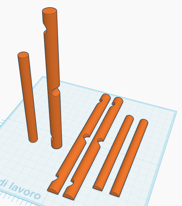 Nel mio caso ho ricostruito il modello basandomi sul disegno e su ricostruzioni simili sviluppate da altri maker e divulgatori online, ma ho scelto una semplificazione didattica molto utile: il ponte è realizzato soltanto con due moduli ripetitivi che sono stampati in sezione in modo da accelerare la stampa, le due falde dei rispettivi moduli saranno incollate insieme.