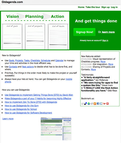 Ringrazio Dan che mi ha segnalato gtdagenda.com lasciando un commento al mio articolo: Getting Things Done su del.icio.us Vocescuola ho inserito il link su del.icio.us.