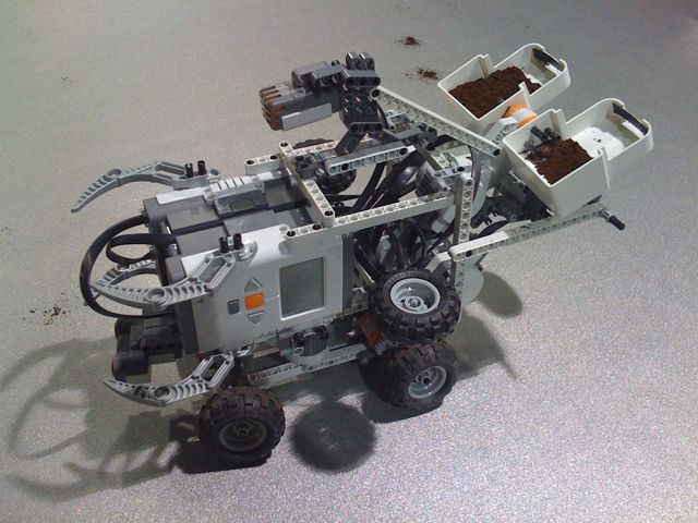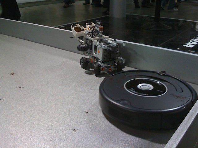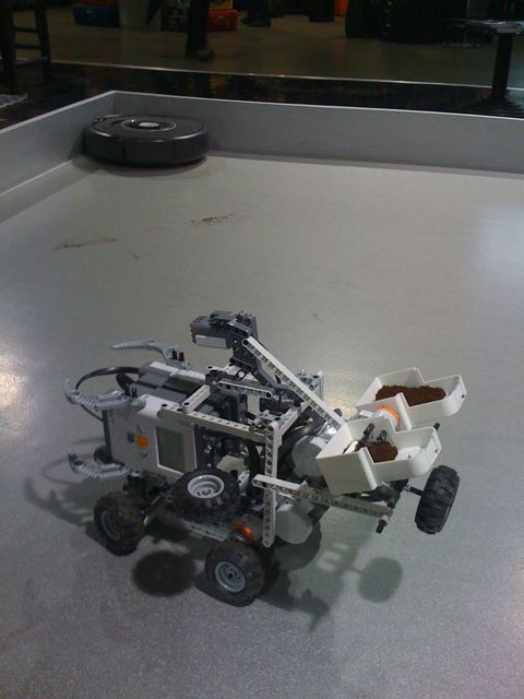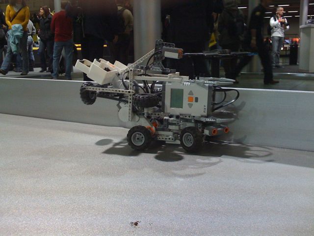 Oggi il robot sporcaccione distribuisce caffè, rende più verosimile l’idea di sporco. Alcune varianti dell’ultimo minuto al mio robot con l’aggiunta di due paraurti anteriori che proteggono i sensori ad ultrasuoni e le ruote anteriori da forti urti di Roomba. Tv e fotografi molto incuriosito. Molte persone chiedono dettagli su NXT, programmazione, costruzione…