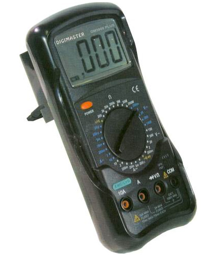 Vi riassumo i passi fondamentali, estratti dal manuale d’uso dello strumento, per eseguire una misurazione con il multimetro adottato nel nostro laboratori, il Digimaster DM 3900 Plus, è opportuno leggere il manuale di istruzioni (seguite il link per prelevare la versioni pdf in italiano) tenete in conto che la spiegazione che trovate su questa pagina si riferisce al modello rappresentato in figura e a parte piccole differenze l’uso resta simile per tutte le tipologie di multimetro digitale portatile.