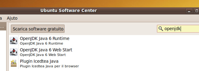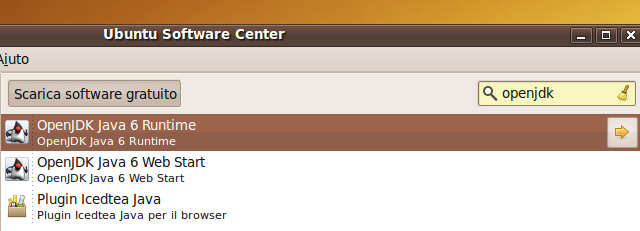 Per l’installazione di OpenJDK, potete a scelta utilizzare Ubuntu Software Center oppure il gestore pacchetti, io per questioni di velocità ho preferito di usare Ubuntu Software Center: