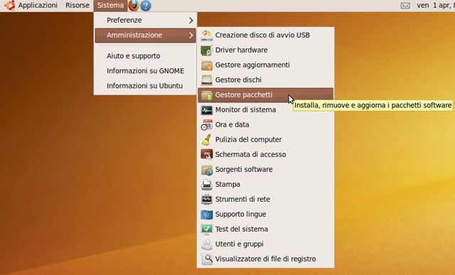 Durante questa installazione ho pensato di realizzare una serie di screenshot per mantenere memoria di tutte le fasi necessarie. I computer sono attualmente dotati di Ubuntu 9.10 (karmic), per l’installazione sull’ultima versione 10.10 si procede in modo simile.