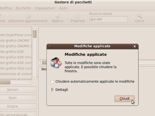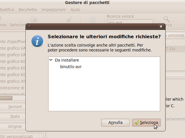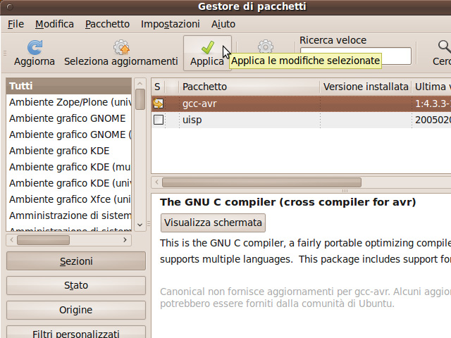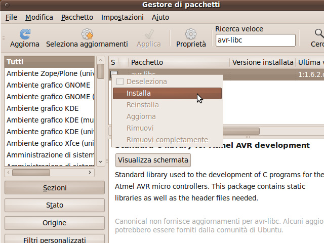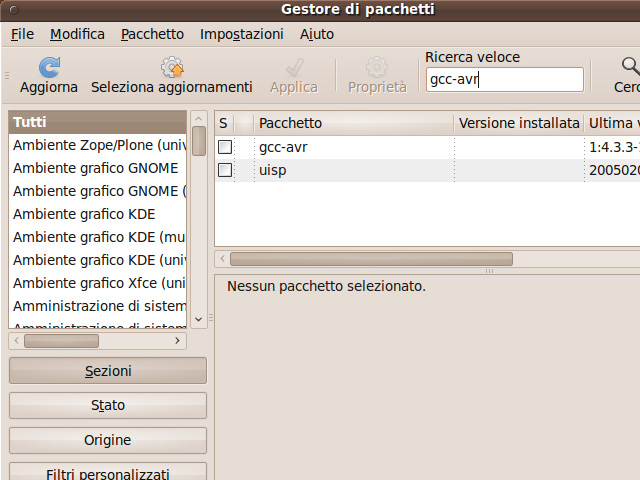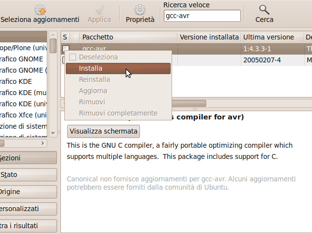 Cercate il pacchetto inserendo nel campo di ricerca gcc-avr: