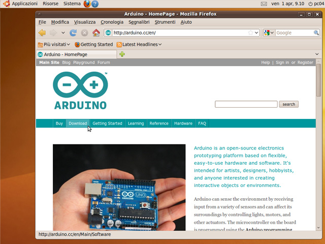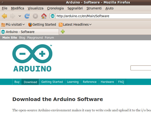 Ora installiamo l’ambiente di sviluppo. Andiamo su www.arduino.cc: