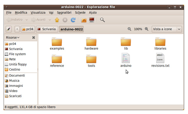 Apriamo la cartella arduino-0022 e doppio click sul file “arduino“: