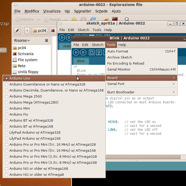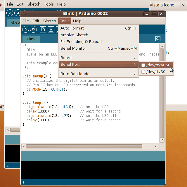 Selezionate la porta seriale che utilizzerete per comunicare con la scheda, nel mio caso ttyACM1, questo il percorso: