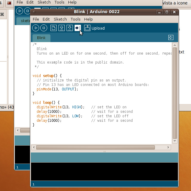 Effettuate l’upload dello Sketch “Blink” di prova: