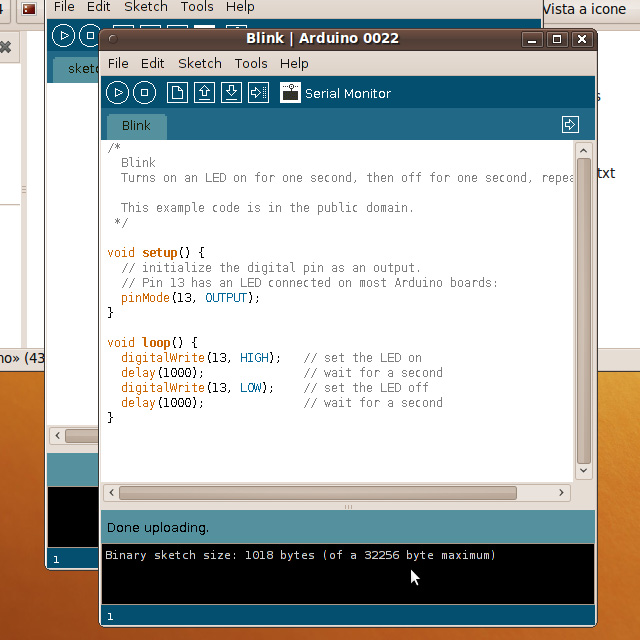 Il LED connesso al piedino 13 incomincerà a lampeggiare: