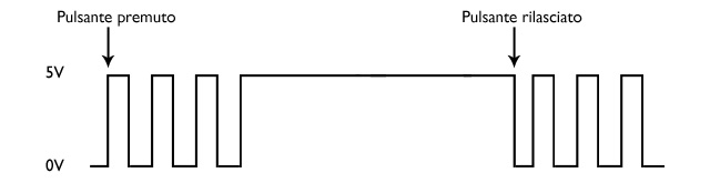 Come vi avevo detto il malfunzionamento dipende dal fatto che i pulsanti meccanici rimbalzano per alcuni millisecondi nel momento in cui sono premuti e rilasciati, questo è il grafico del segnale elettrico:
