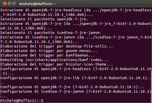 Non dovrete confermare più nulla, capirete che l’installazione di Java è conclusa quando comparirà nuovamente il prompt: