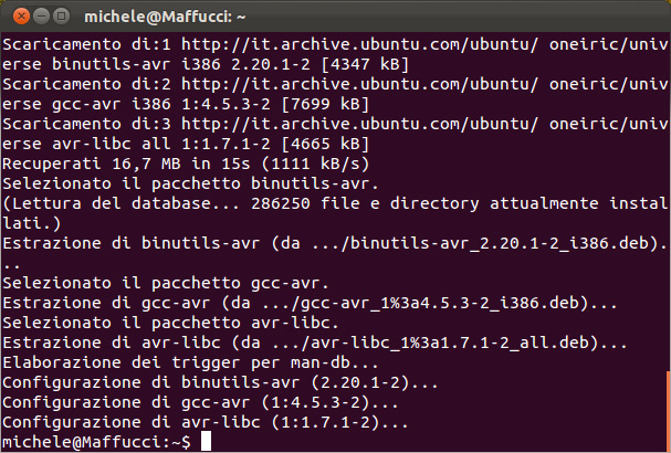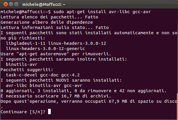 03. A questo punto, come detto nel tutorial precedente, bisogna installare la libreria AVR C, procediamo sempre da linea di comando: