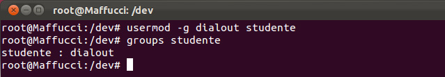 usermod -g dialout studente