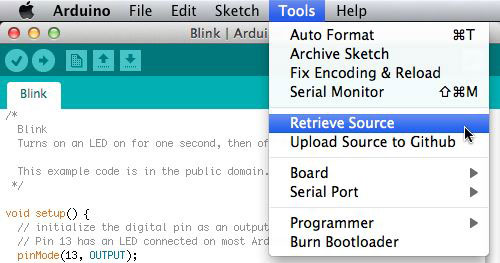 Vi segnalo Upload And Retrieve Source un’estensione all’IDE di Arduino di cui ho trovato segnalazione su IDEO Labs (consiglio di aggiungere ai vostri bookmarks). L’estensione è utilissima e sicuramente proverò ad utilizzarla per rendere gli sketch pubblici su Github, ma anche recuperarli in un secondo momento, in modo semplice direttamente dall’IDE Arduino. Sicuramente un modo per tenere ordinato ed aggiornato il codice che produciamo.