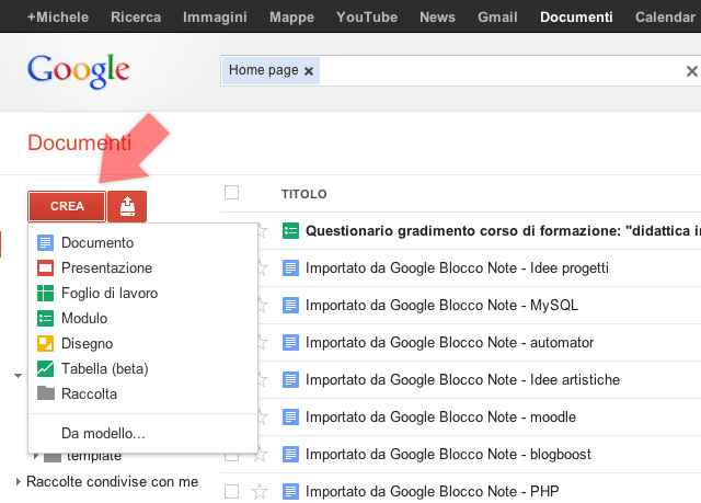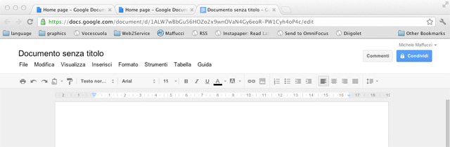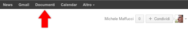 Per accedere a Google Documenti fate click sul link “Docuneti” nella barra in alto: