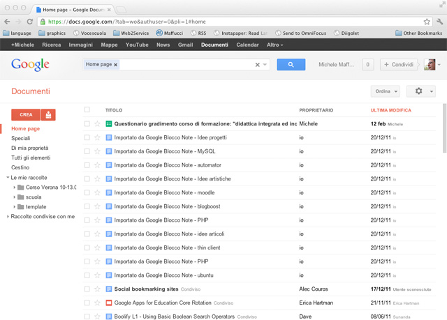 Verrà visualizzata la finesta da cui potrete creare tutti i vostri documenti (nell’immagine sono presenti documenti da me creati in precedenza, per un account nuovo non sarà visualizzato ovviamente nessun documento):