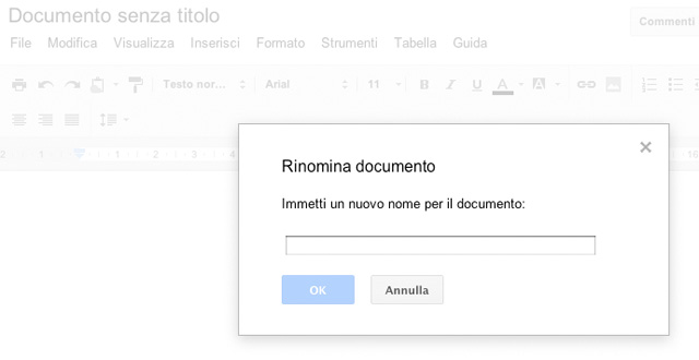 Cliccando sul titolo è possibile rinominare il documento creato.