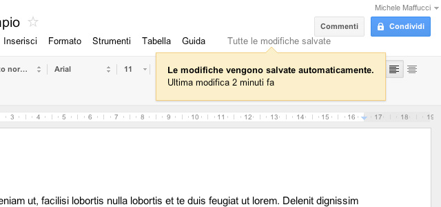 I documenti che scriviamo vengono salvati automaticamente non appena viene eseguita una modifica in questo modo non avremo modo di perdere i dati inseriti.