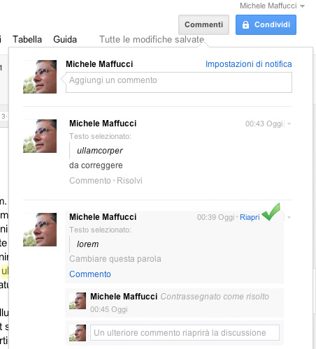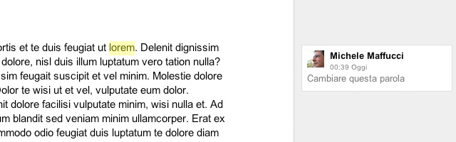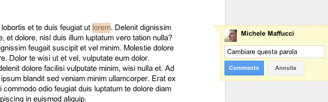 Un click sul pulsante “Commento” e la votra nota verrà aggiunta a lato del documento: