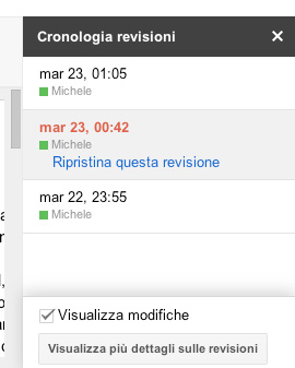 Per visualizzare più dettagli sulle revisioni: click su “Visualizza più dettagli sulle revisioni“, potrete anche ripristinare una delle versioni passate.