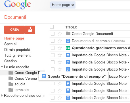 Dalla schermata iniziale a cui si arriva facendo click sul link “Home Page” potrete trascinare i file direttamente nelle cartelle: