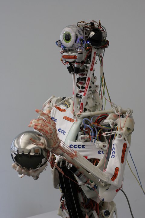 Eccerobot un enorme robot ciclope che per alcuni aspetti fisici è molto simile all’essere umano, nel senso che è stato progettato imitando la struttura interna del nostro corpo: ossa, articolazioni, tendini e muscoli. Per maggiori informazioni: eccerobot.org