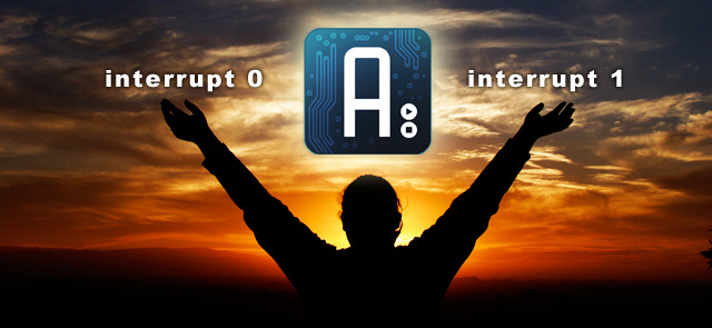 L’interrupt viene generato quando si verifica una variazione di stato su uno dei piedini di Arduino. Normalmente il microcontrollore esegue all’interno del loop() in modo sequenziale e ripetitivo le istruzioni in esso inserite, ma quando si verifica un interrupt viene interrotto il flusso delle istruzioni all’interno del loop() ed invocate altre routine (create dall’utente). Quando le routine terminano il flusso del programma prosegue normalmente.