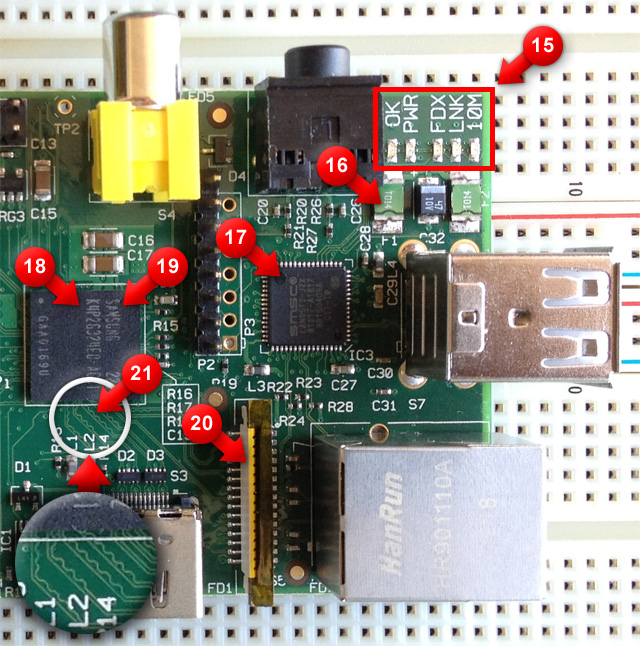 “Il cervello” del Raspberry Pi. Sotto la RAM è collocato il processore ARM11 (ARM1176JZF-S) a 700 MHz e la GPU VideoCore IV