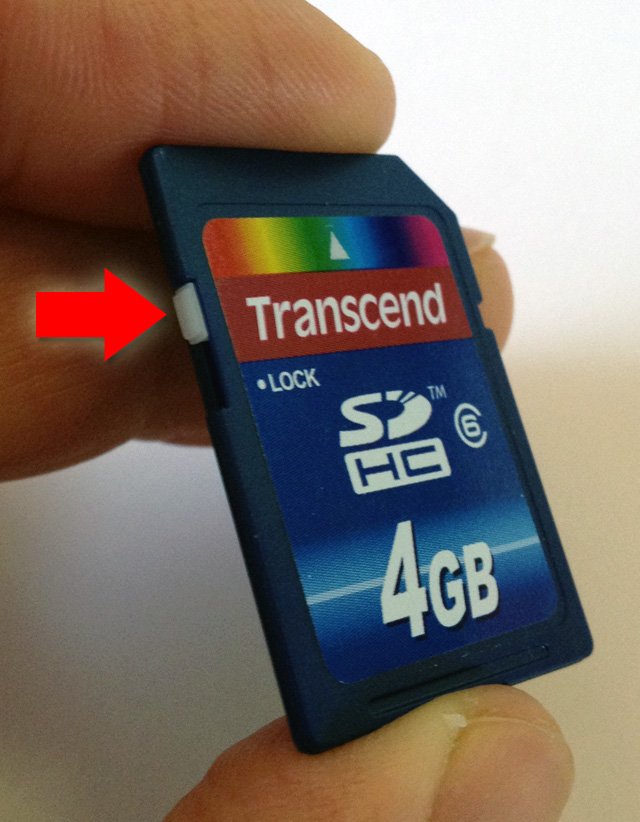 Assicuratevi che il selettore NON sia nella posizione LOCK, se così non fosse non riuscireste a scrivere sulla scheda e quindi anche a formattarla:
