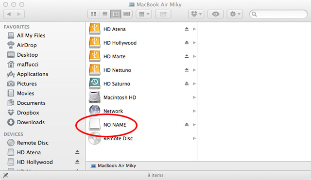 Come potete notare l’SD inserita, che ha nome “UNTITELED”, compare nell’ultima linea: