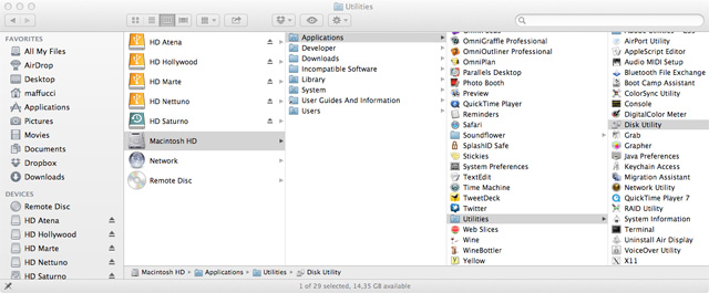 Avviate adesso Disk Utility che trovate Applications -> Utility del vostro HD