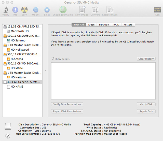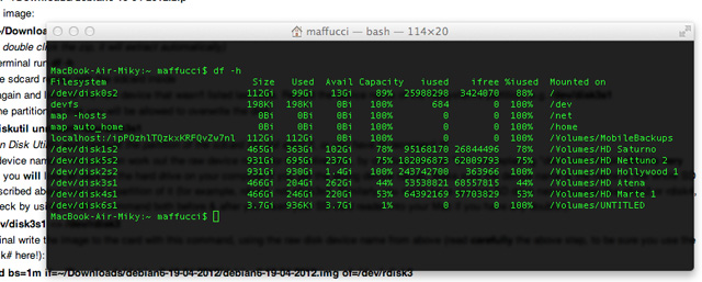 nel mio caso la periferica ha nome disk6s1, ovviamente nel vostro caso avrà nome diverso