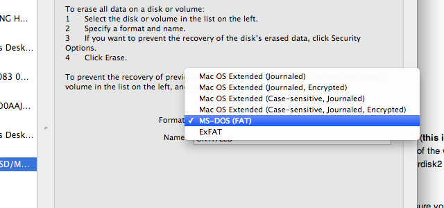 Nel tipo di formattazione selezionate: MS-DOS (FAT)