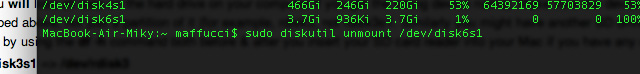 sudo diskutil unmount /dev/disk6s1