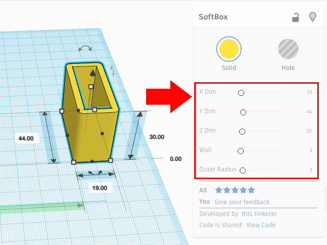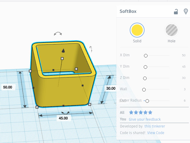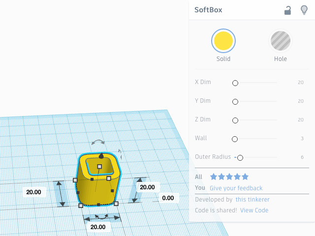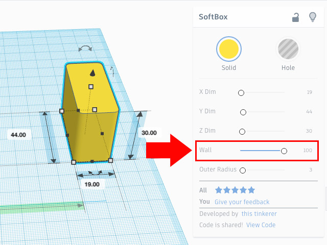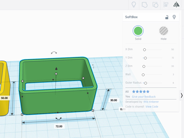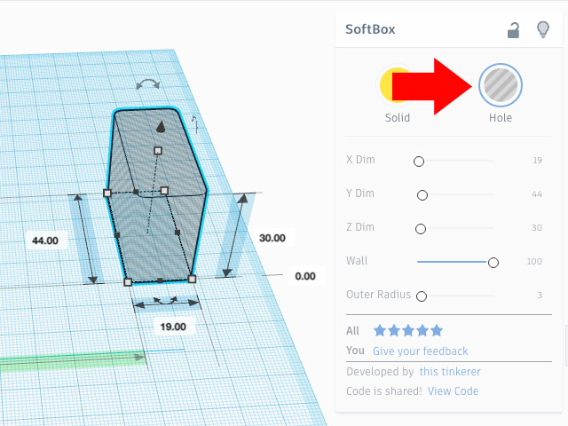 Selezionate e trascinate sul piano di lavoro il SoftBox, una scatola smussata forata da entrambe le parti: