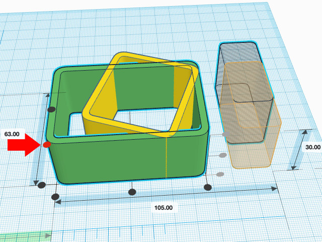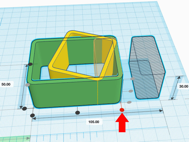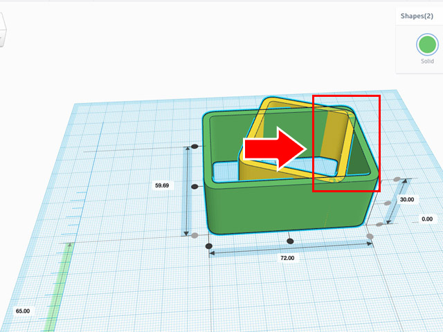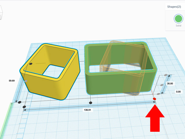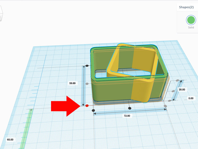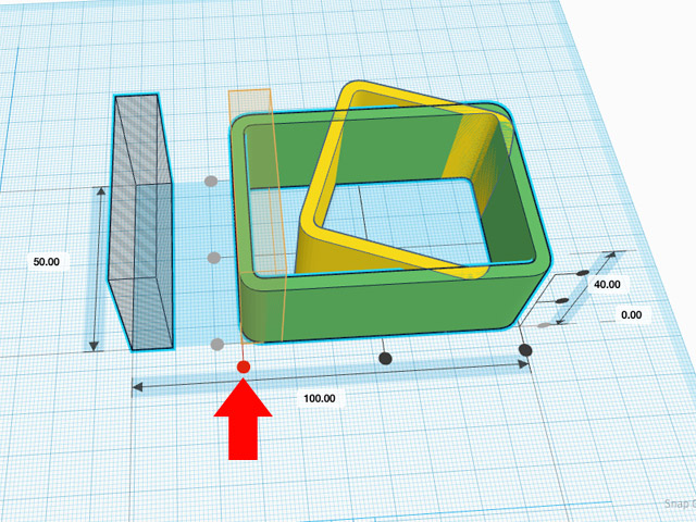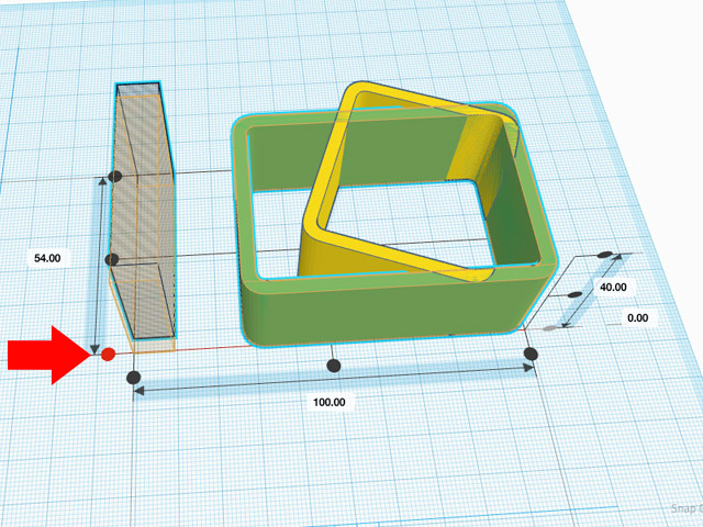 Allineare l’oggetto foro con la base dell’oggetto verde: