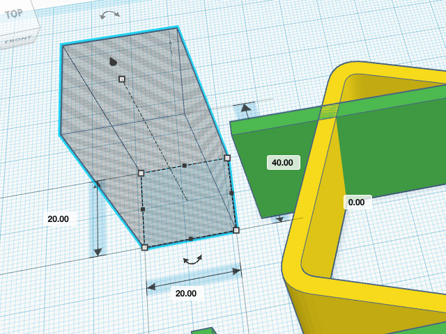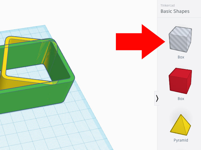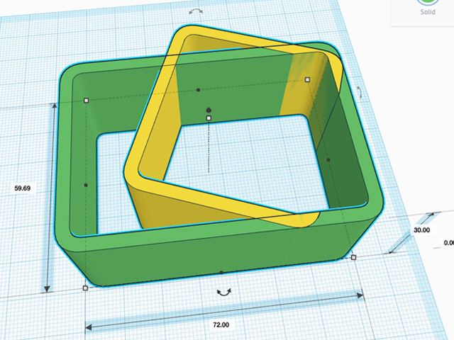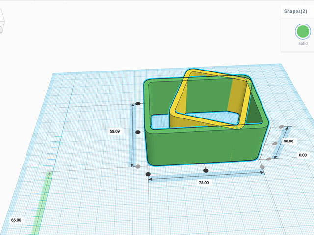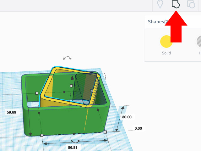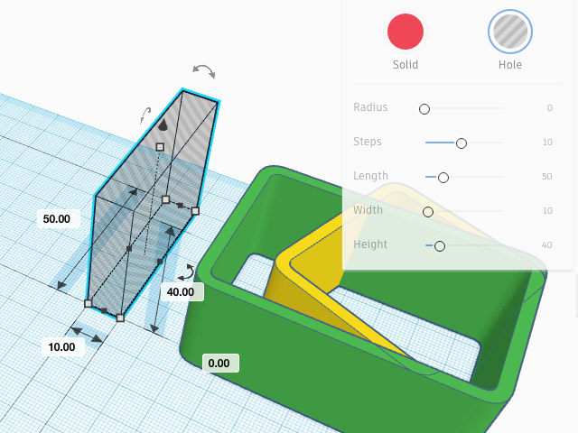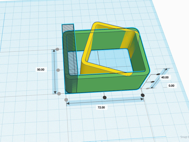 Per creare l’elemento di incastro per il nostro smartphone dovremo eliminare una parte dell’oggetto verde, selezionate quindi un box foro: