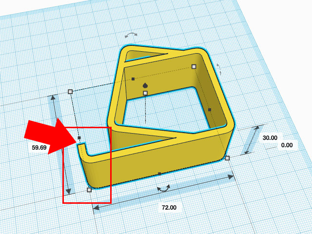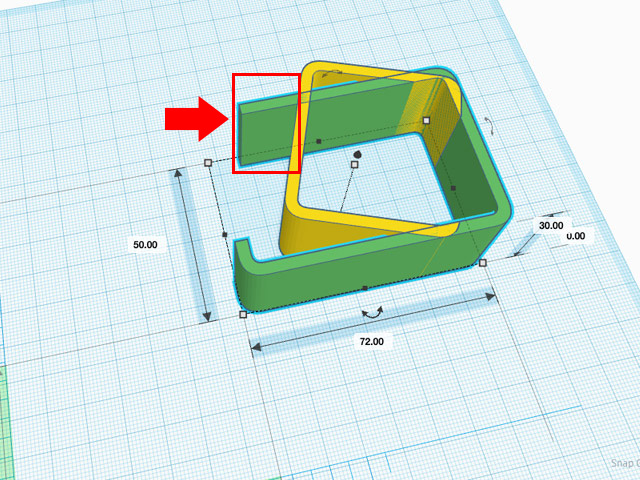 Per rendere esteticamente interessante l’oggetto elimineremo la parte riquadrata in rosso nell’immagine precedente.
