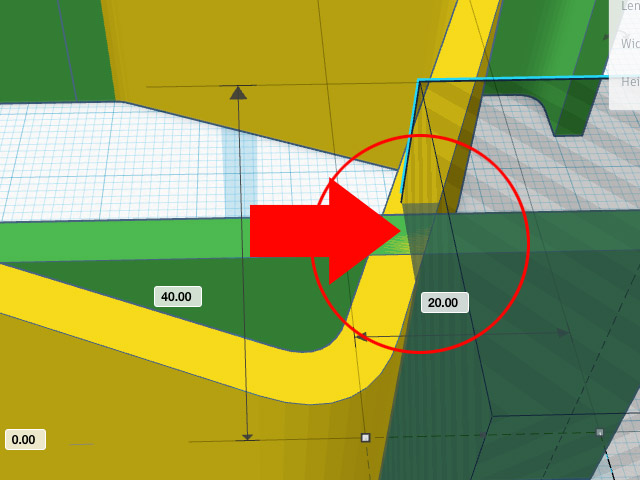 Spostare il box foro fino all’intersezione tra blocco giallo e verde come rappresentato nell’immagine che segue: