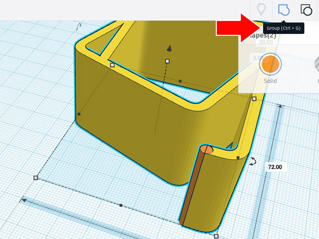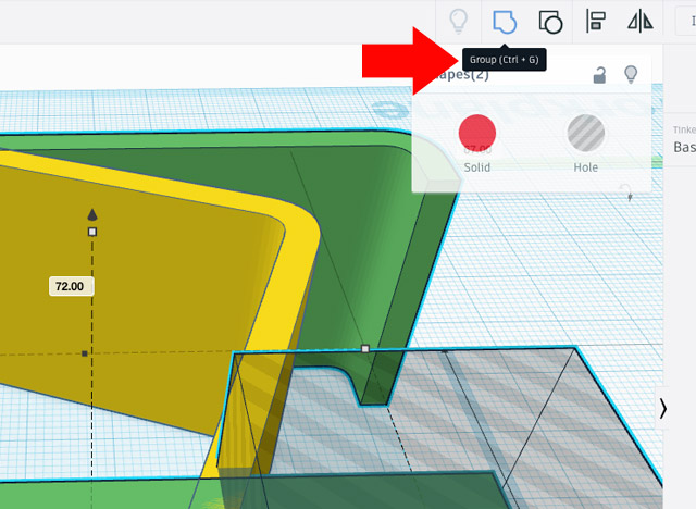 Ora effettuate un raggruppamento tra oggetto giallo e foro:
