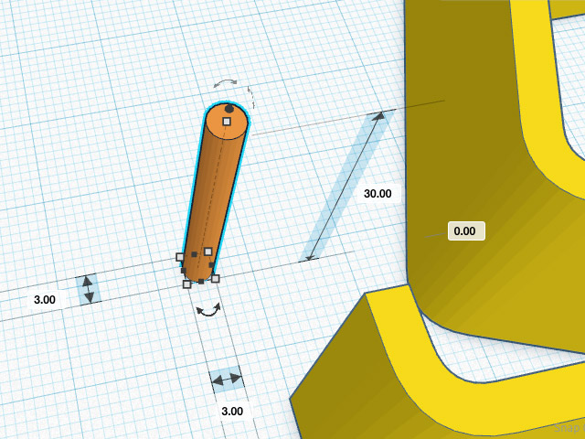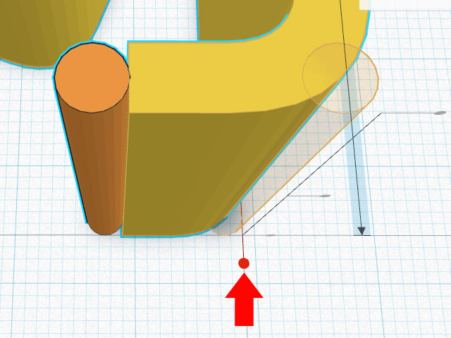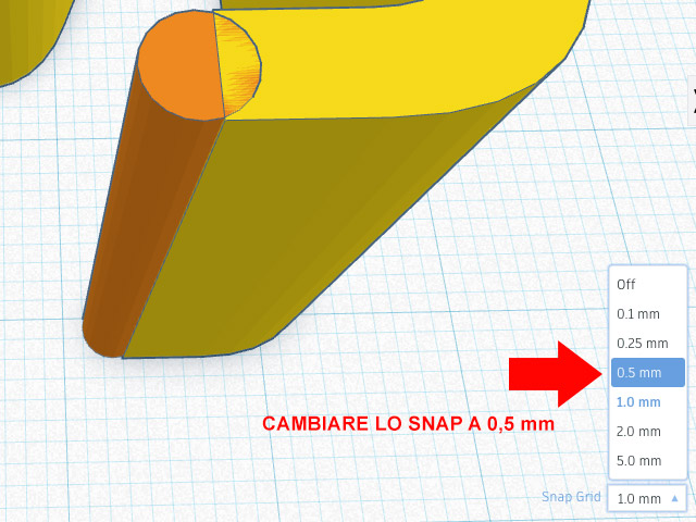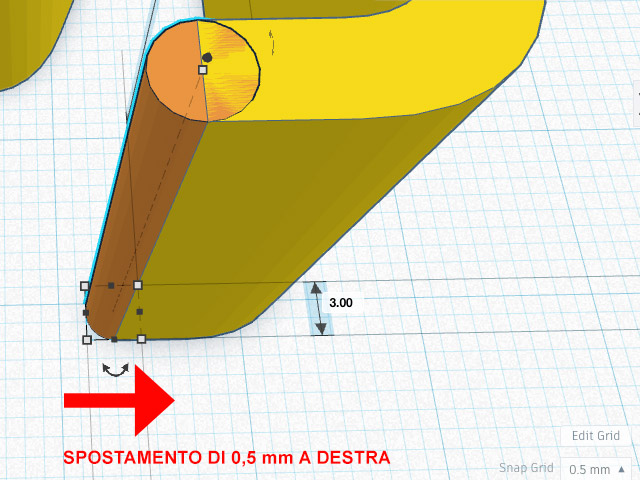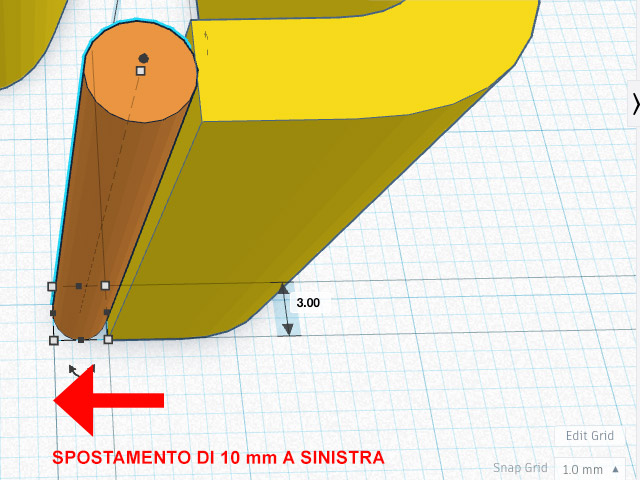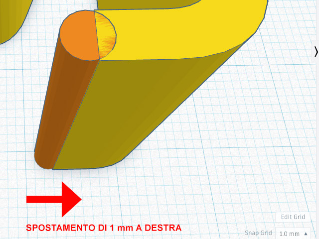 Per far si che metà del cilindro sia perfettamente inserito all’interno dello spigolo giallo spostatevi di 1 mm a destra facendo click con il tasto freccia destro della tastiera:
