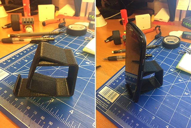 Costruire un’attività didattica sull’uso della stampa 3D credo riesca meglio se improntata sulla realizzazione di oggetti che immediatamente possono essere utilizzati, oggetti che si integrano nel nostro vivere quotidiano, quindi anche sulla scrivania di casa, ecco perché ho pensato a questo supporto per smartphone… uno sguardo all’oggetto dovrebbe gratificare e concretizzare materialmente ciò che abbiamo imparato.