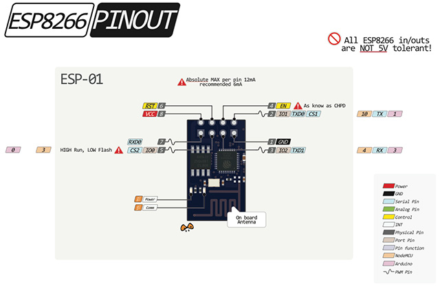 Per una trattazione estesa sull’uso della GPIO 0 e della GPIO 2 come output ed input vi rimando ai seguenti post: ESP8266 Using GPIO0/GPIO2/GPIO15 Pins e How to Use the ESP8266-01 Pins