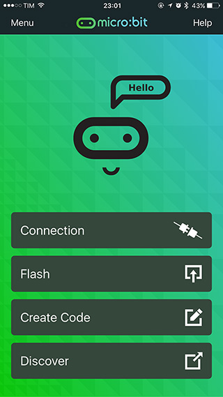 Questa la schermata principale dell’App per iOS che utilizzo per programmare i miei micro:bit: