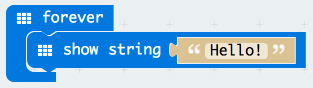 Disponete l’istruzione “show string Hello!” all’interno dell’istruzione “forever”