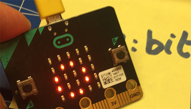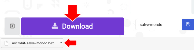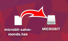 Per caricare il programma sulla scheda sarà sufficiente trascinarlo all’interno del micro:bit, durante la fase di copia il LED che segnala l’alimentazione lampeggerà e il programma verrà eseguito immediatamente. Al termine del caricamento, il micro:bit verrà espulso come una normale periferica USB e automaticamente riconnesso: