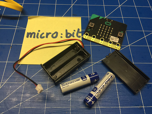L’alimentazione della scheda può avvenire mediante alimentazione esterna attraverso due batterie a stilo AAA da 1,5 V. Nel kit base: micro:bit go è incluso il contenitore per le due batterie e due batterie: