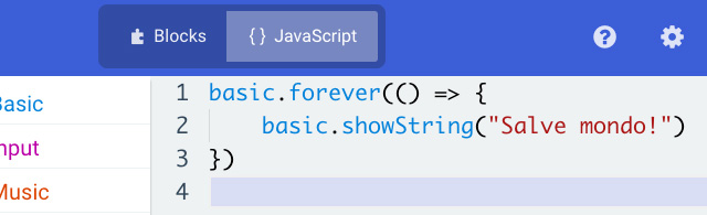 impareremo in lezioni successive a programmare in questo linguaggio, per ora torniamo alla nostra programmazione a blocchi facendo click sul pulsante Blocks.