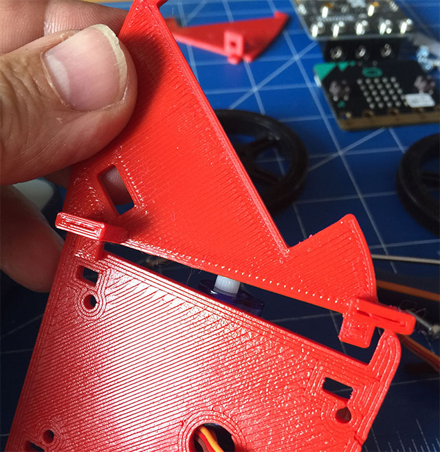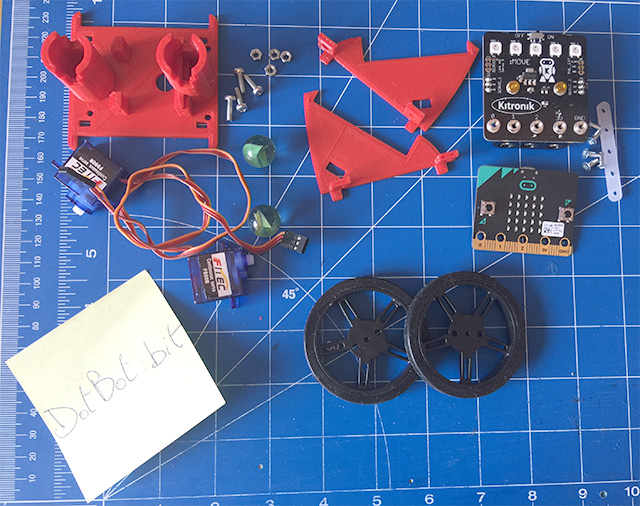 Se desiderate stampare questa struttura vi rimando alla pagina di riferimento di DotBot:bit su Thingiverse.