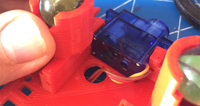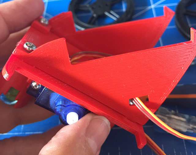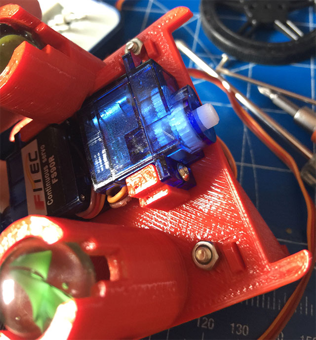 Fissiamo i servomotori a rotazione continua sulla struttura: