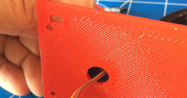 La stampa di tutte le parti, solo 3 elementi, richiede circa 1 ora e 40 minuti, ho usato per il primo prototipo del PLA rosso, con un layer di 0,3 mm ed un riempimento del 30%, il peso totale degli elementi stampati è di circa 36 grammi, quindi con 1 Kg di PLA potrete stampare un bel po’ di robot, circa 28 DotBot:bit 🙂
